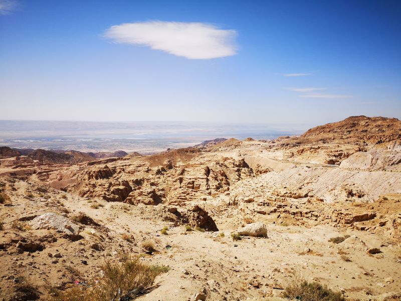 Auf der Fahrt nach Petra unternehmen wir einen Abstecher zum "Museum am tiefsten Punkt der Erde". Allerdings liegt das Museum nur 360 m unter dem Meeresspiegel, also 80 m über dem Toten Meer! |