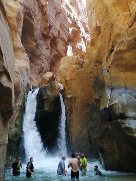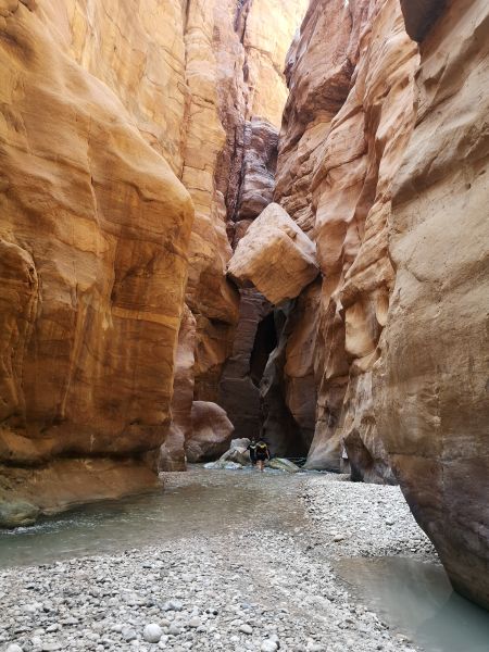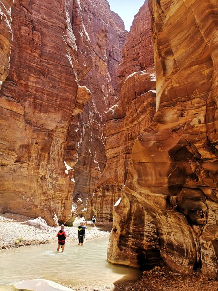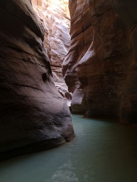 | Das Wadi wird enger, das Wasser tiefer und es fließt schneller. | ||||