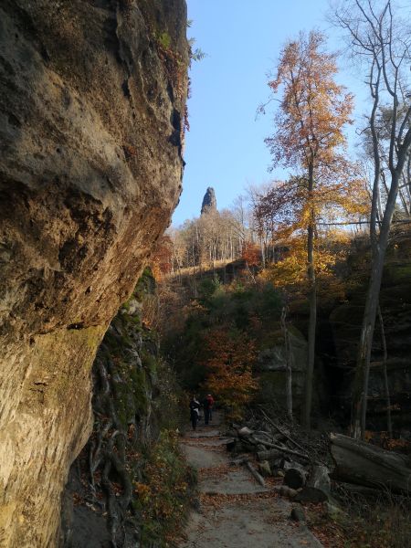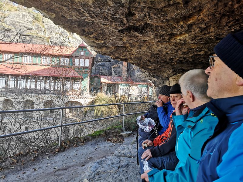 Geplant war, über den Gabrielensteig nach Mezní Louka zu laufen. Der Weg ist wegen Sturmschäden gesperrt, somit müssen wir auf gleichem Weg zurück nach Hřensko. Die Bootsfahrt auf der Wilden und der Edmundsklamm ist jahreszeitbedingt nicht möglich. |