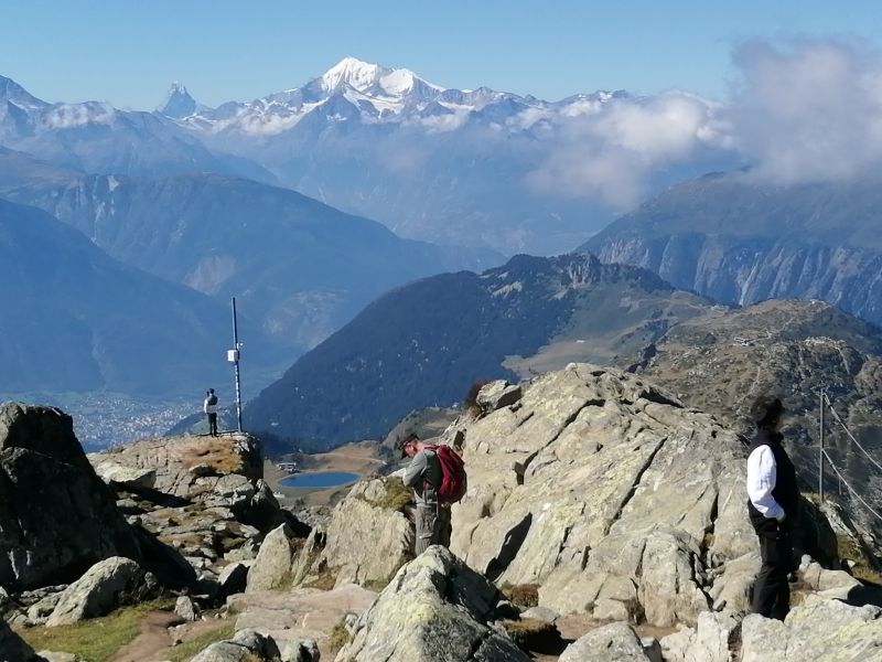 Nach dem Verlassen der Brücke wandern wir auf dem Bergrücken Titter nach Egga und weiter zum Auto. Erstmals seit unseren Wanderungen im Wallis verabschiedete sich die Sonne und es gibt leichte Regenschauer. |