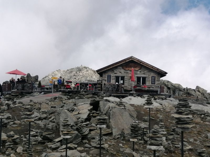 Im Hintergrund links neben der Hütte ist der Gipfel des Eggishorns |