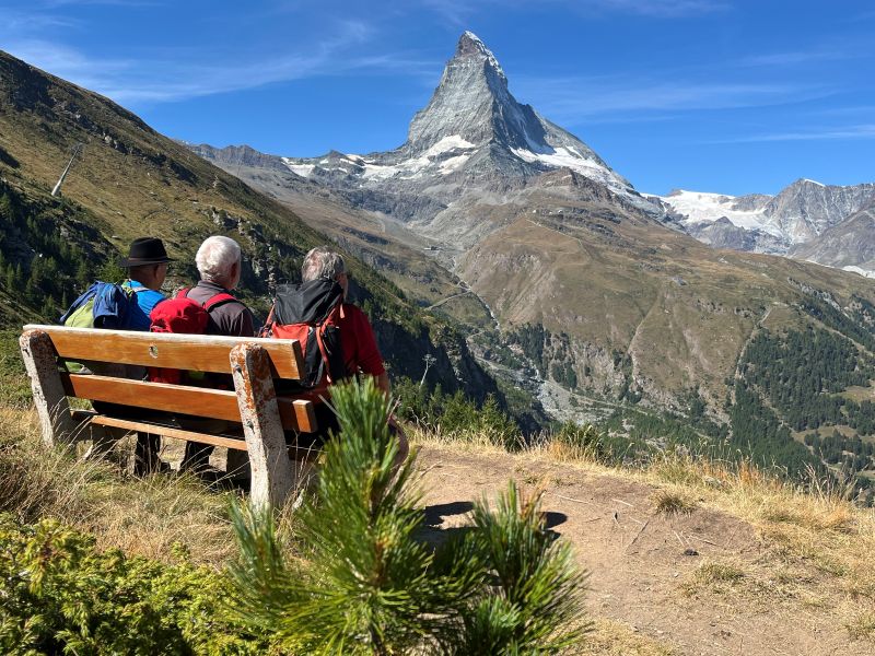 | Drei Männer beim Betrachten des Matterhorns |